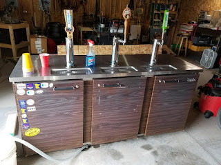 Eventually I will finish the walls and ceiling with some more rough sawn wood like the rest of the pub. Speaking of pub, I added a beer tap through the wall. My cousin gave me a kegerator which is located on the back side of the wall in the garage portion of the building.